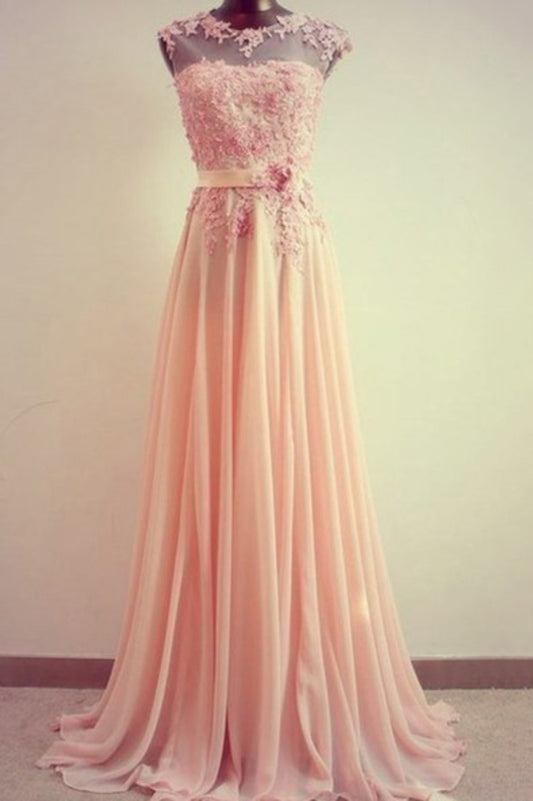 Pink Fairy A Line V Neck Chiffon Lace Long Bridesmaid Dress, BD25060