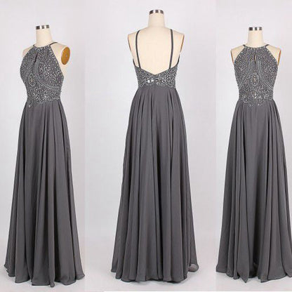 A-Line Gray Backless Chiffon Prom Dresses, Backless Bridesmaid Dresses, Wedding Party Dresses, Backless Evening Dresses, BD2303123