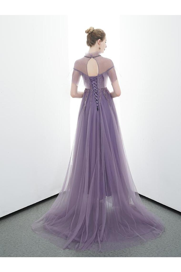 A-Line Tulle Long High Neck Prom Dresses With Ruffles Formal Evening Dress,JL20124