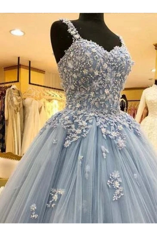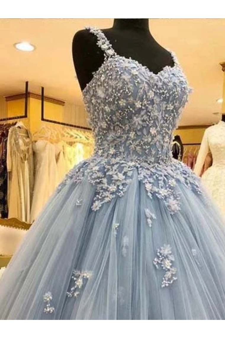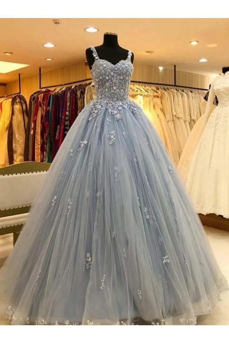 Ball Gown Straps Long Prom Dress Appliques Quinceanera Dress,JL20007