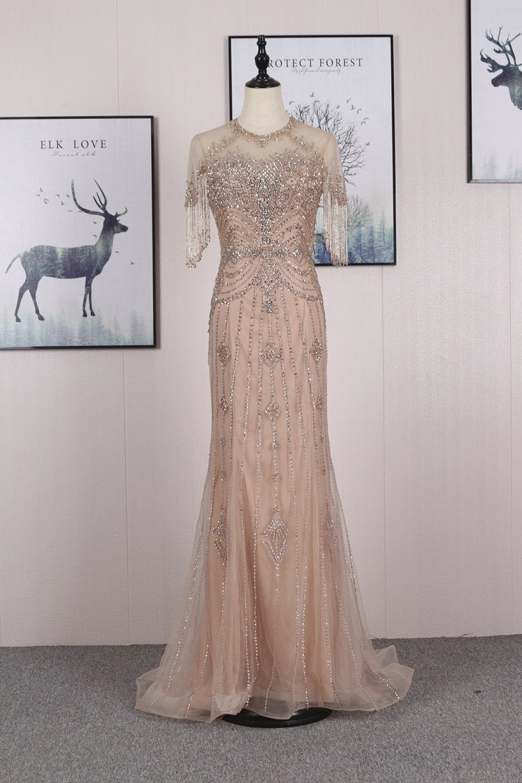 Beaded Cap Sleeve Sheath Dress - Gorgeous Long Prom Gown, PD23022211