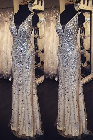 beaded prom dress, long prom dress, v-neck prom dress, charming prom dress, sheath evening dress, BD42