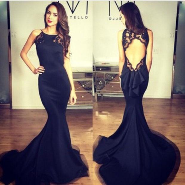 black prom dress, long prom dress, formal prom dress, open back prom dress, charming evening gown, BD47