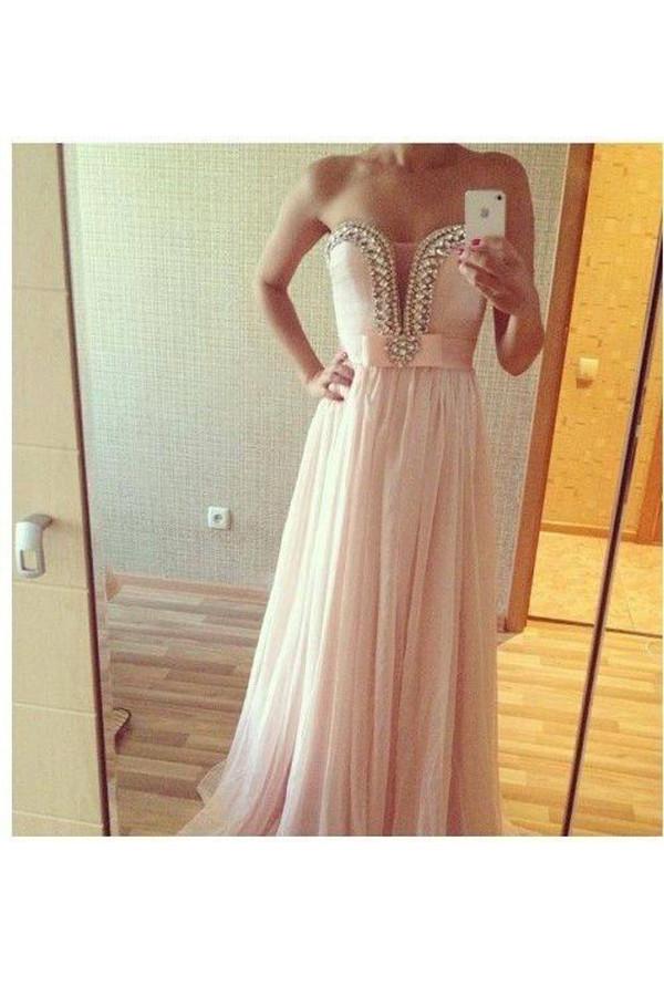 blush pink prom dress, long prom dress, chiffon prom dress, strapless prom dress, evening dress, BD43