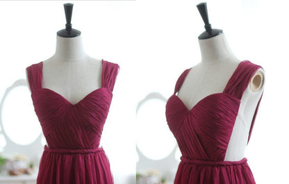 Burgundy Chiffon Backless Prom Dress, Formal Bridesmaid Dress, BD2303114