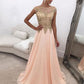 cap sleeves appliques chiffon blush pink long prom dress, PD9679