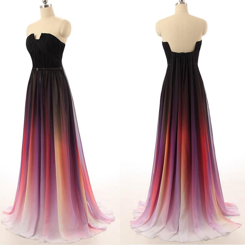 chiffon prom dress, long prom dress, strapless prom dress, Gradient prom dress, evening dress, BD84