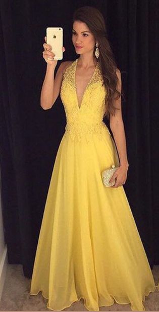 Daffodil Chiffon V-neck Princess A-Line Prom Dress, PD2310043