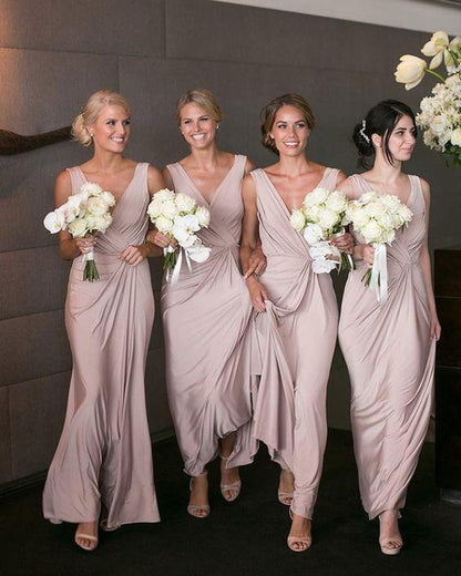 dusty pink chiffon v-neck long Bridesmaid Dresses, PD9802