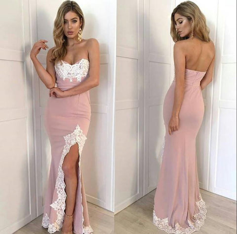 dusty pink mermaid side slit sweetheart lace appliques long prom dress, PD1481