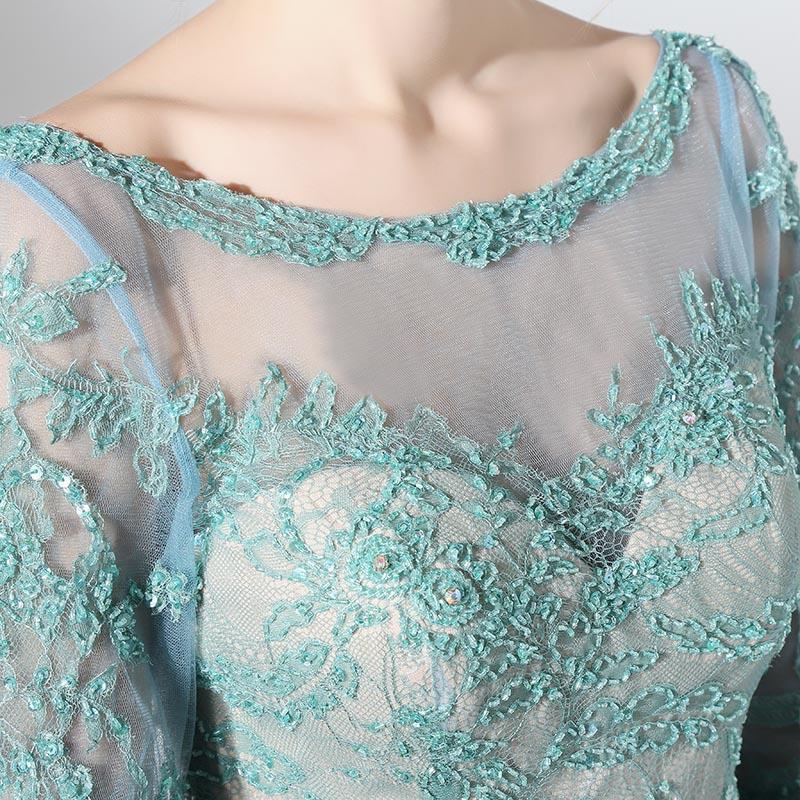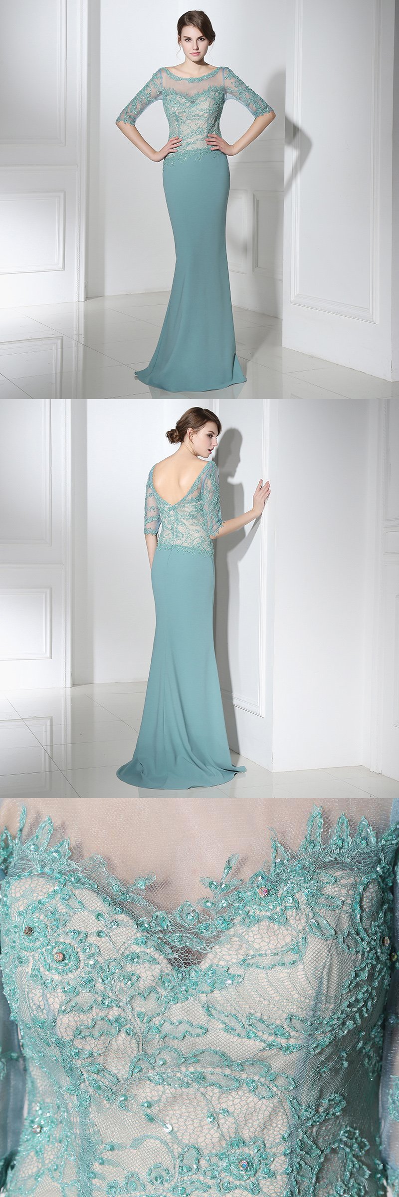 Elegant Applique Long Prom Dresses Mermaid Evening Dresses Half Sleeve Beaded Formal Dresses,LX394