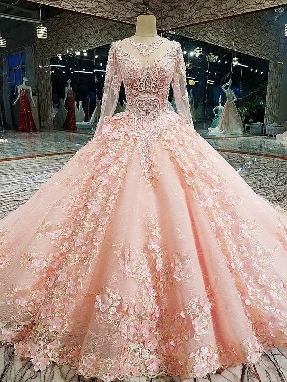 Elegant Beaded Ball Gown - Long Sleeve Tulle Quinceanera Dress, PD23022215