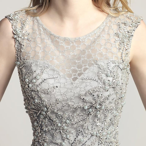 Elegant Beaded Long Prom Dresses Pearls Evening Dresses Mermaid Sleeveless Formal Dresses,LX445