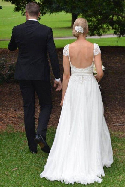 Ivory Lace Cap Sleeves Beach Wedding Dress, WD23022650