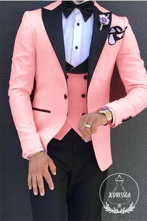 Elegant Pink Tuxedos Prom Suits 3 Pieces Designer Peak Lapel Men Suits, SU25036