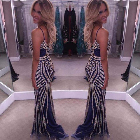 formal mermaid spaghetti straps sparkle long evening dress, PD8578