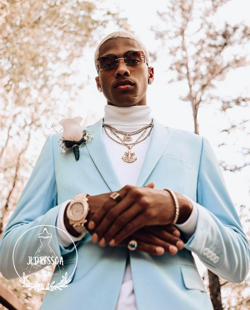 Discover a timeless and sophisticated look with our Gorgeous Tiffany Blue Suit. Perfect for any formal occasion or business meeting, this two-piece suit features a classic lapel design and is available exclusively online. Turn heads and exude elegance with this stunning suit.