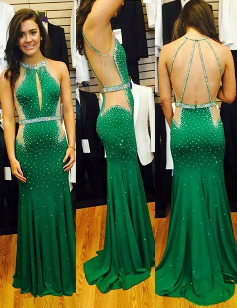 green prom dress, long prom dress, beaded prom dress, mermaid prom dress, charming evening dress, BD0003