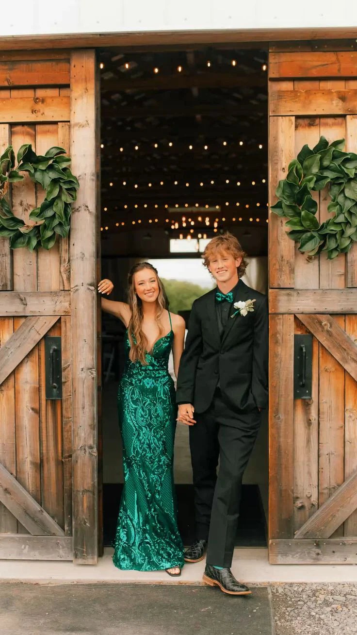 This Green Sequins Cute Sparkly Mermaid V Neck Long Prom Dress adds a touch of glamour to any prom night. The flattering mermaid silhouette and sparkling green sequins make for a stunning look, while the v-neckline accentuates the neckline. Elevate your prom experience with this elegant and eye-catching dress.