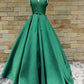 hunter green satin A-line formal elegant long prom dress, PD11146