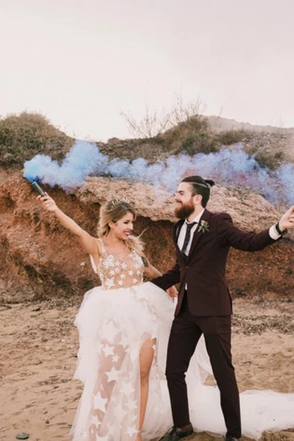 Ivory See-Through Wedding Dress with Star Lace Pattern, WD2303238