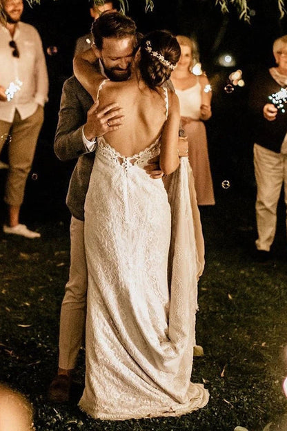 Lace Mermaid Wedding Dresses Lace with Spaghetti Straps, WD2302274