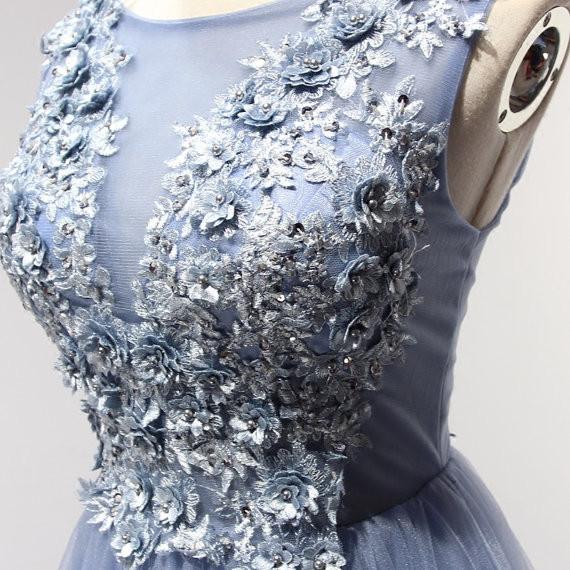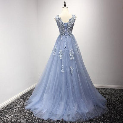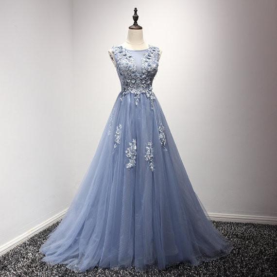 lavender prom dress, long prom dress, tulle prom dress, A-line prom dress, lace up evening gown, BD382
