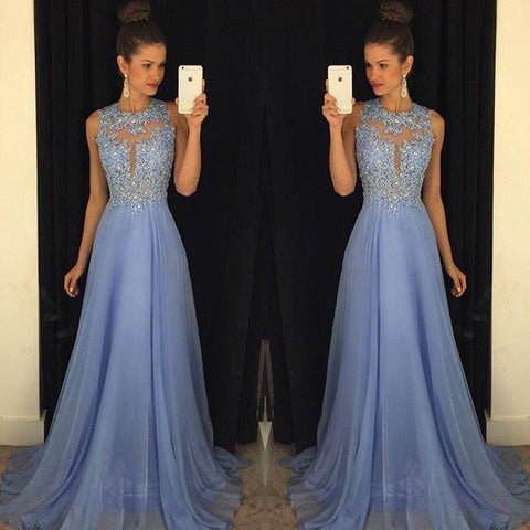 Lavender Prom DressesFormal Long Bridesmaid Dresses A Line Crew Neck Zip Back Chiffon Party Gowns ZF0001
