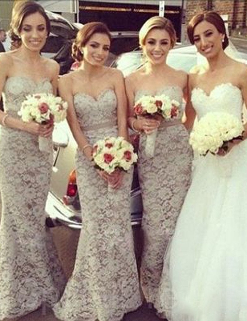 Light Grey Bridesmaid Dress, Sweetheart Bridesmaid Dress,Lace Bridesmaid Dress,Sash Sheath Bridesmaid Dress, Mermaid Bridesmaid Dress, PD0014
