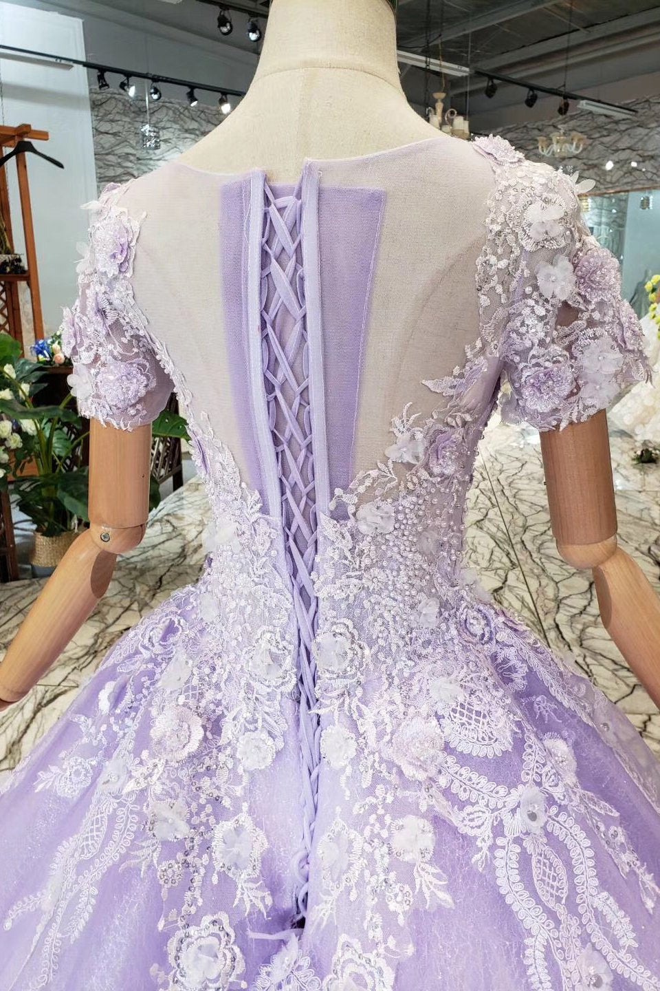 Lilac Short Sleeve Ball Gown - Quinceanera Prom Dress, PD23022222