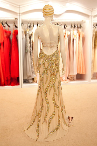 Luxurious Beaded Long prom Dresses Sweetheart Strapless Evening Dresses Backless Mermaid Formal Dresses,YLN039