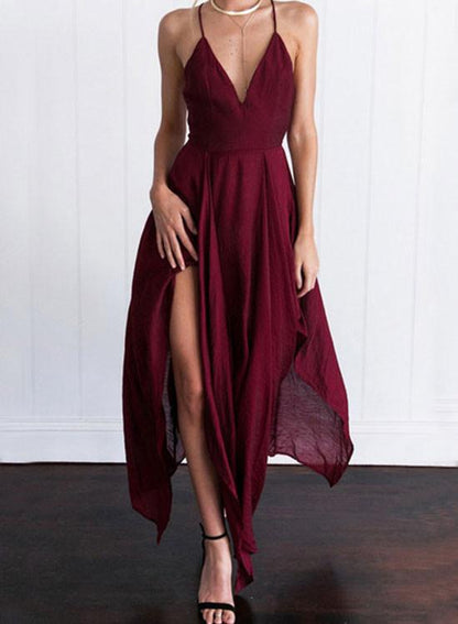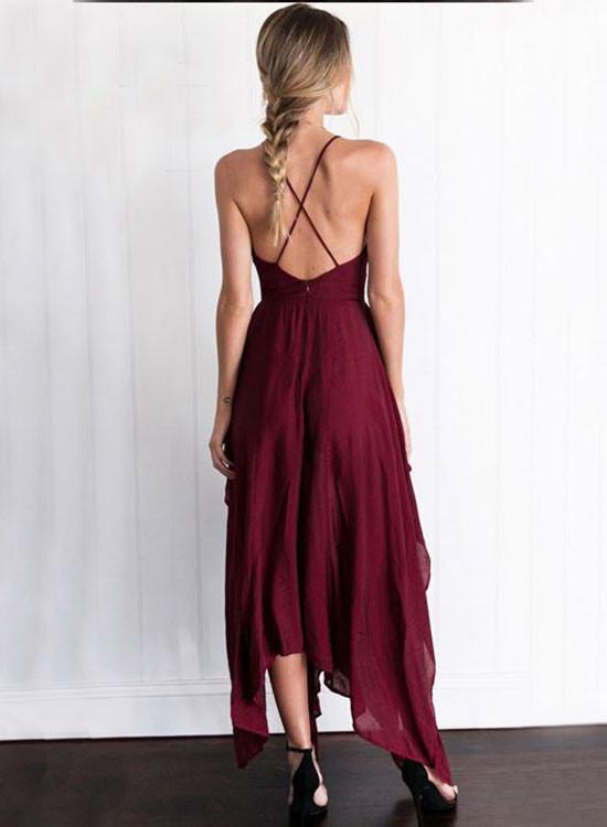 Maroon V-Neck Backless Prom Dress, Formal Bridesmaid Dress, BD23031111