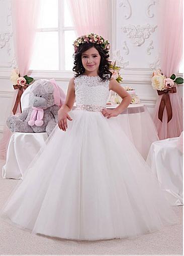 Marvelous Lace And Tulle Jewel Neckline A-Line Flower Girl Dresses, FW01