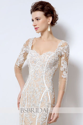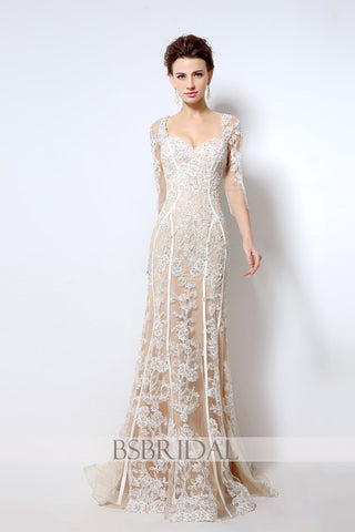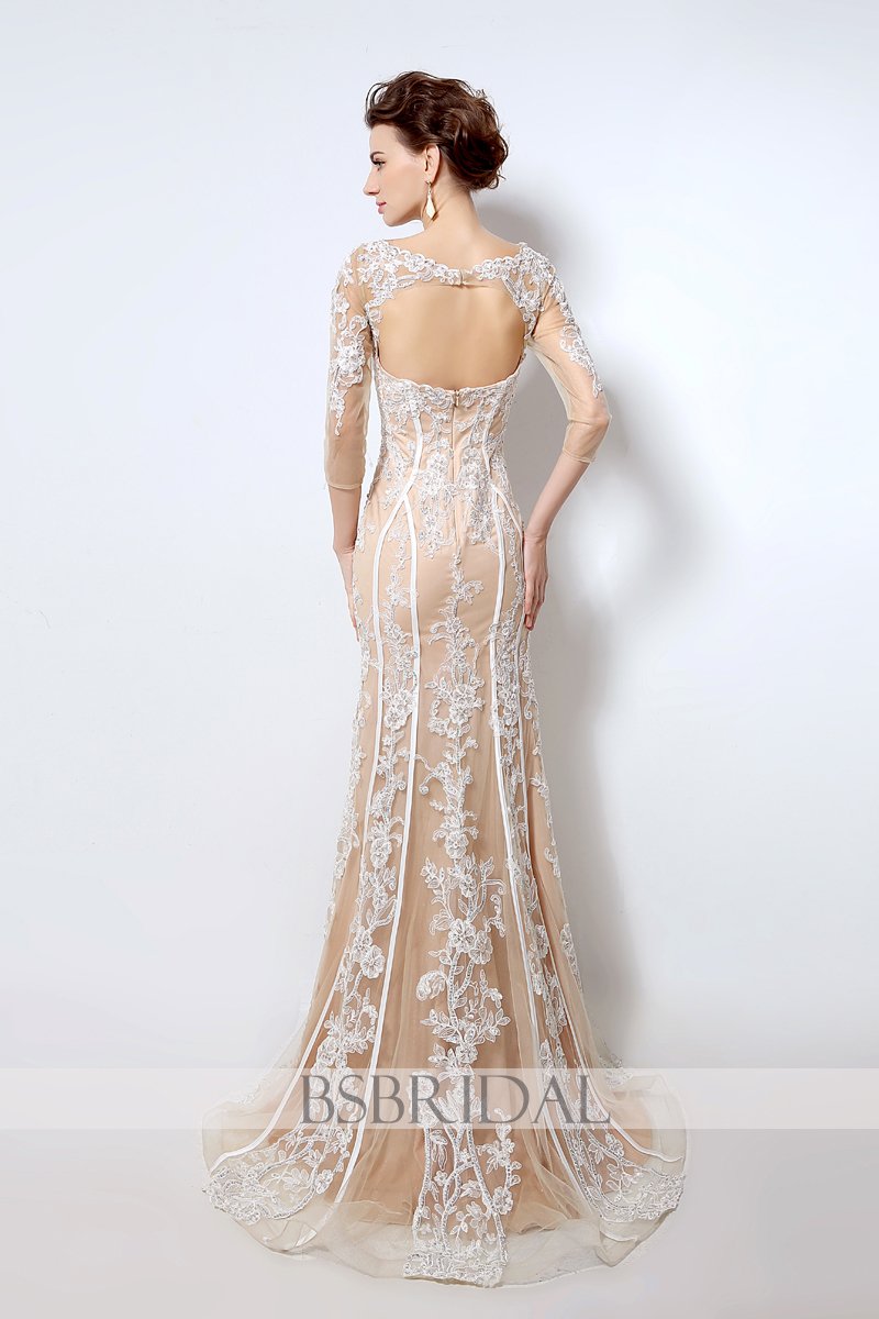 modest elegant mermaid long sleeves lace long prom dress, LX013