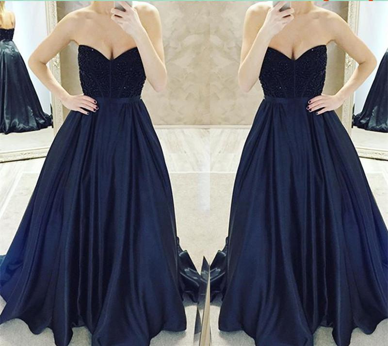 Navy prom dress, long prom dress, A-line prom dress, strapless prom dress, charming evening gown, BD24