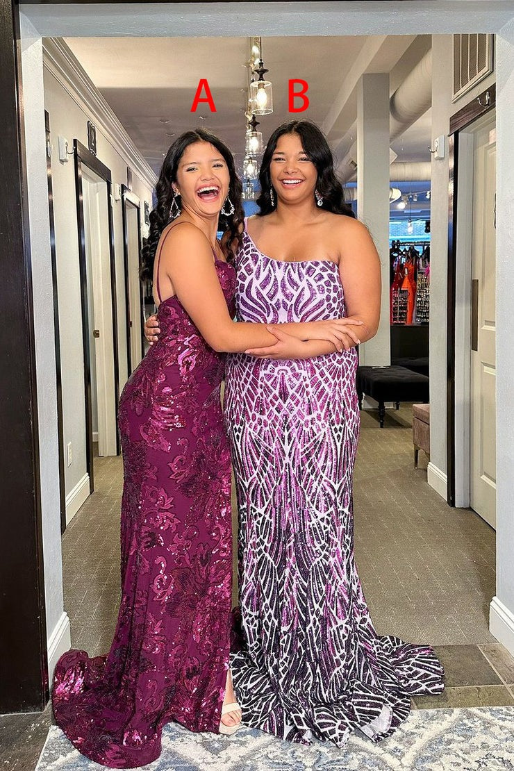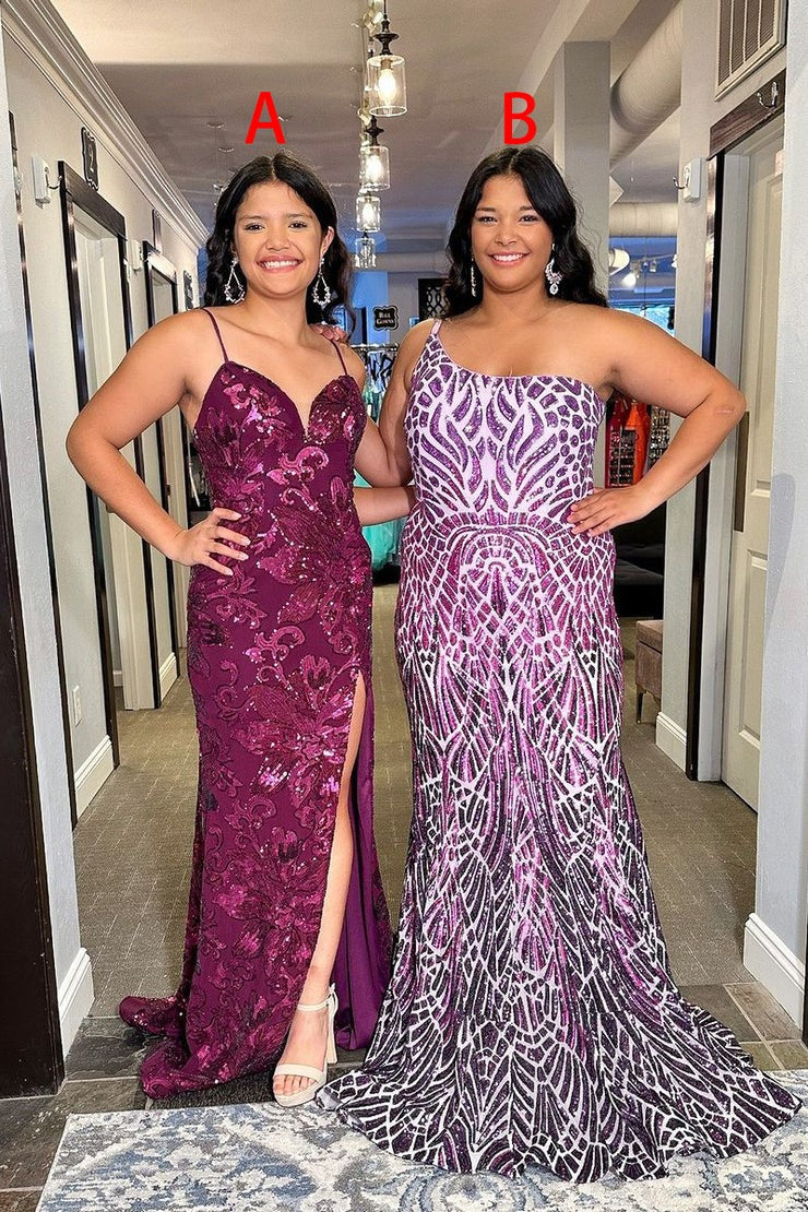 This Purple Sequins One Shoulder Mermaid Long Prom Dress is a glamorous and elegant choice for any special occasion. The one-shoulder design and mermaid silhouette are flattering and stylish, while the purple sequins add a touch of sparkle. Perfect for prom or a formal event, this dress will make you stand out in the crowd.