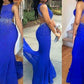 royal blue open back long mermaid prom dress, evening dress, PD45749