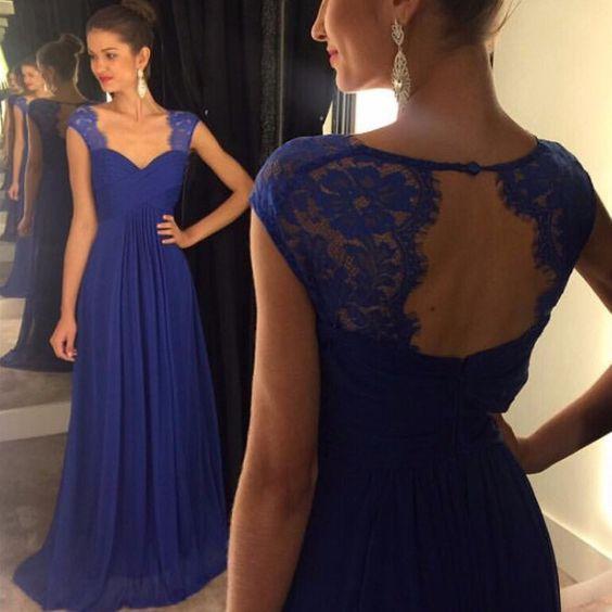 royal blue prom dress, long prom dress, chiffon prom dress, evening dress, bridesmaid prom dress, BD402