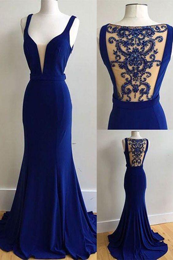 royal blue prom dress, long prom dress, formal prom dress, mermaid evening dress, 2017 evening dress, BD415