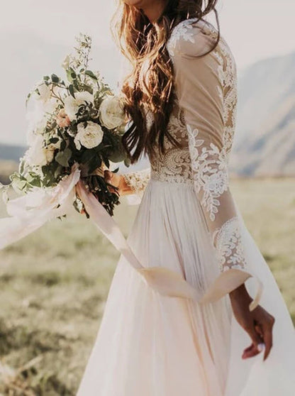 Rustic Ivory Long Sleeve Lace Beach Wedding Dress, WD23041111