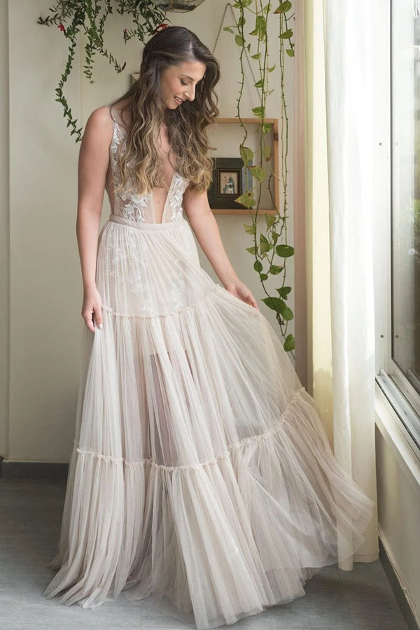 Rustic Long Sleeve Backless Ivory Lace Wedding Dress, WD23022687