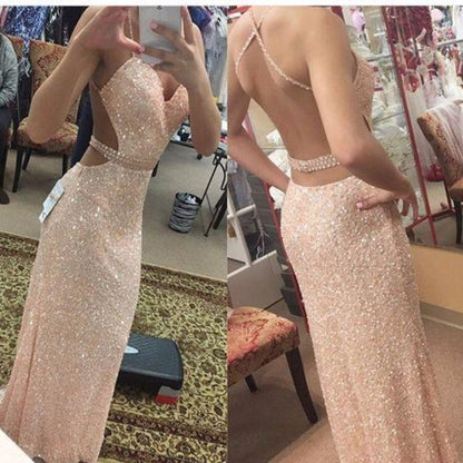 sexy pink sequin sparkle long backless prom dress, PD5673