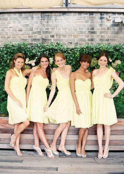 short mismatched light yellow chiffon Bridesmaid Dresses, BD3212