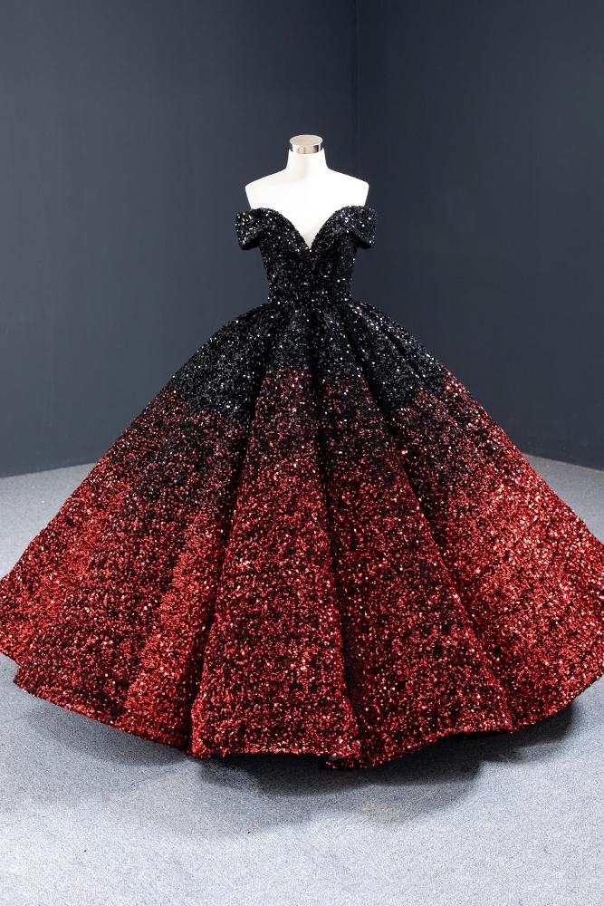 Sparkling Off Shoulder Ball Gown - Long Princess Prom Dress, PD23022234