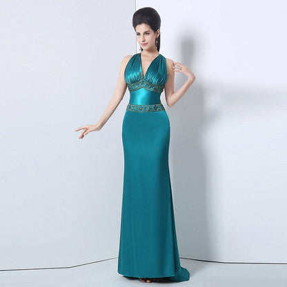 Stylish V-Neck Long Prom Dresses Beaded Mermaid Evening Dresses Backless Formal Dresses,SD172