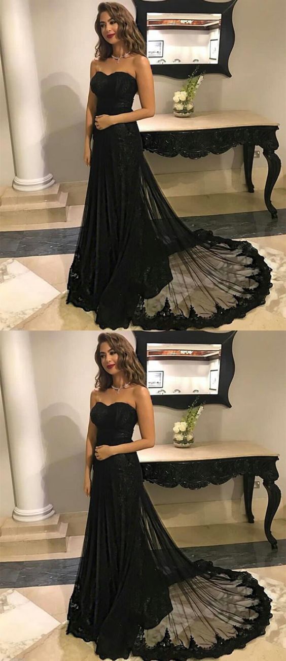 sweetheart black lace long prom dress, BD45412