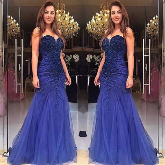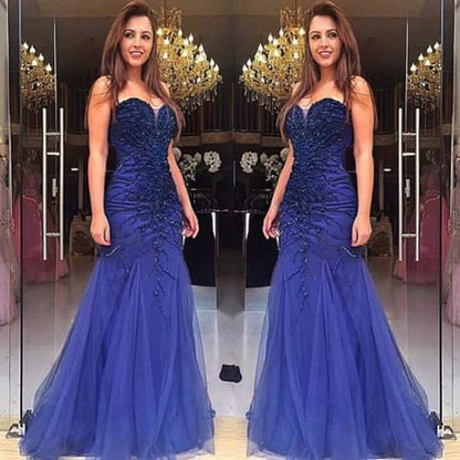 sweetheart dark blue beaded mermaid long prom dress, PD8879