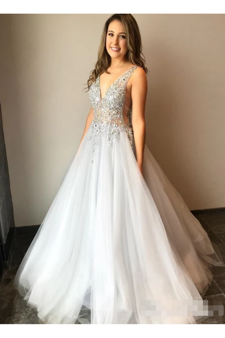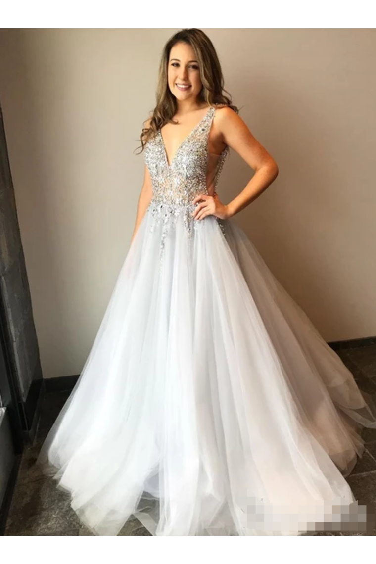 Tulle V Neck Ball Gown With Re-Embroidered Lace Appliques Prom/Wedding Dresses,JL201281