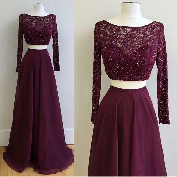 Two-Piece Long Sleeves Prom Dress with Lace, PD545