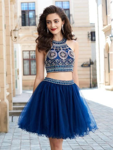 two pieces homecoming dress, short homecoming dress, royal blue homecoming dress, beaded homecoming dress, homecoming dress, BD3790